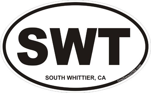 This South Whittier, California Vinyl Transfer Oval Decal is made at our facility in Scottsboro, Alabama. Each California Sticker’s quality is guaranteed. This South Whittier decal was designed to be displayed with pride on your automobile windshield as well as used for various applications such as hard hats, door signage, shadow boxes, vehicle signs, air planes, motorcycles and motorcycle helmets and much more. All of our decals are proudly produced in the USA. For bulk pricing for custom and wholesale decals click here: Custom & Wholesale Decals!*While many of our customers use our decals on a variety of surfaces. Their intended purpose is for windshield applications