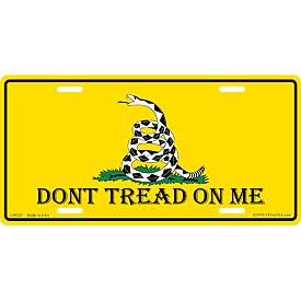 This Don’t Tread On Me Gadsden Flag License Plate is made from heavy gauge aluminum and has a baked enamel finish to last for many years of use. Each plate measures 5 15/16" x 11 15/16". This license plate would make a wonderful addition to your collection or a great gift.