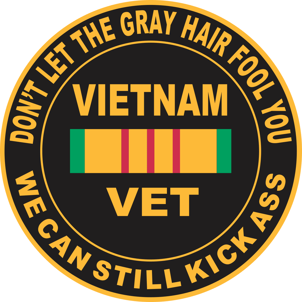 This "Don't Let the Gray Hair Fool You, We Can Still Kick Ass", Vietnam Veteran Decal is Made in the USA at our facilities in Scottsboro, Alabama. Each Decal is made using the finest Ink, Vinyl and Laminate available and all are made for outside applications but are best suited for application to glass and windshields. Our production teams have been producing high quality Military Decals for over 15 Years and we guarantee the quality of each one. Always remember to apply to a clean, dry surface. For bulk pricing for custom and wholesale decals click here: Custom & Wholesale Decals!*MilitaryBest customers use our decals on a variety of surfaces, however, their intended purpose is for windshield applications.
