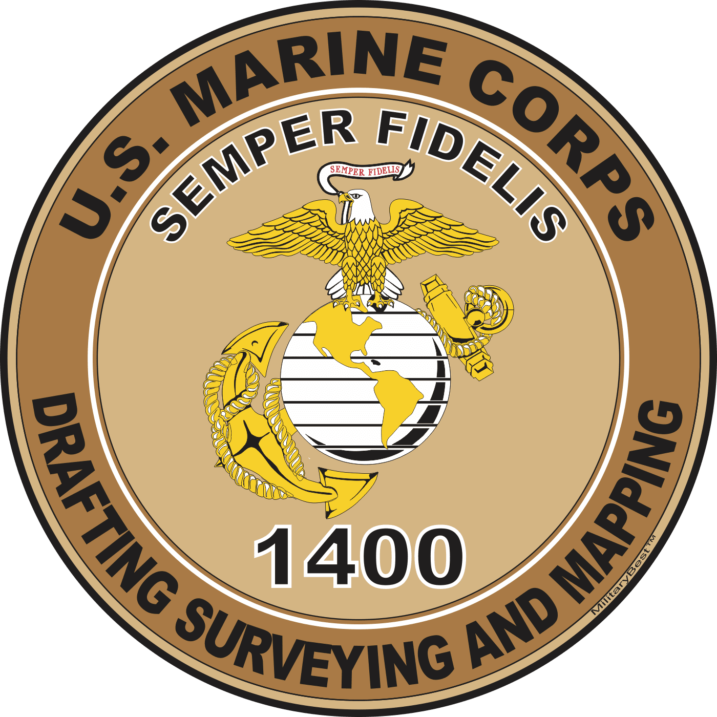 MilitaryBest is proud to offer this U.S.M.C. MOS 1400 Drafting Surveying and Mapping Decal. This U.S. Marine Corps MOS Decal is a great way to show your Marine Pride. All MilitaryBest Marine Corps stickers are printed using high-quality vinyl and U.V. resistant ink. Each is then cured, laminated and die cut for a beautiful crisp, clean and professional look. This U.S.M.C. MOS 1400 Drafting Surveying and Mapping Decal, as well as, any other MilitaryBest.com decal is proudly Made in the USA at our facilities in Scottsboro, AL. Select desired quantity and size from the menu above.Features: