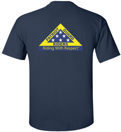 MilitaryBest is proud to offer this fine PGR "Riding with Respect" Front and Back Printed T-Shirt. This shirt features the Patriot Guard Riders "Riding with Respect" Logo on the front left chest and on the back of the shirt. This short sleeve t-shirt is made using a 6 oz pre-shrunk 100% cotton material.Each T-shirt is proudly printed in the USA.
