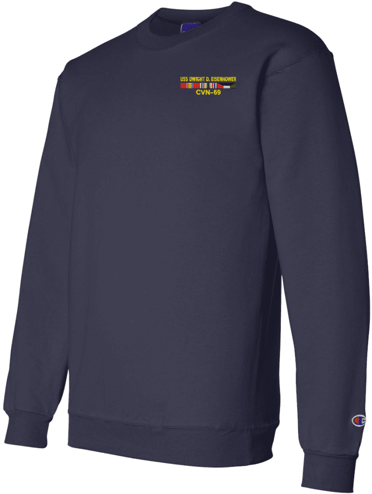 MilitaryBest has expanded its line of apparel with this custom embroidered USS Dwight D. Eisenhower CVN-69 with Desert Storm Ribbons (Kuwait) Sweatshirt. This Sweatshirt will make an excellent addition to your wardrobe, or a great gift. Your satisfaction is Guaranteed! This Sweatshirt is custom embroidered at our facilities in Scottsboro, AL.