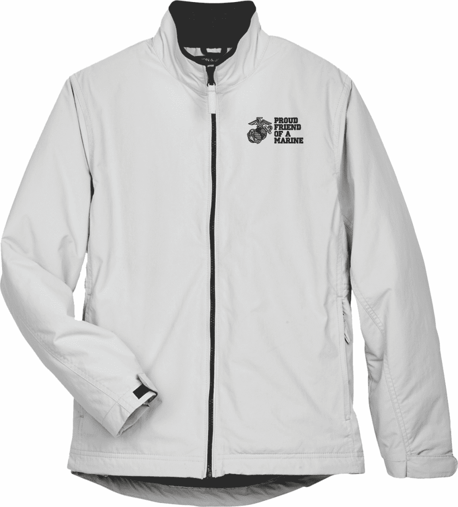 MilitaryBest is proud to offer this United States Marine Corps Eagle, Globe, & Anchor Proud Friend of a Marine Women's Devon & Jones Jacket. Each ladies three season jacket is made from a 3-Layer system consisting of a nylon shell, an insulator layer, Nylon-lined sleeves, and an inside layer of fleece for comfort. Each jacket’s features include a sturdy black enamel front-zipper, raglan sleeves, outsize zip pockets, an inside zip security pocket, YKK zippers, and a banded-bottom. As with all MilitaryBest products, your satisfaction is guaranteed!| S | M | L | XL | 2XL | |