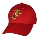 This USMC with black and Gold trim EGA Red Cap, is proudly Made in The U.S.A., has an adjustable strap, and is a 6 panel low profile cap.We will be glad to include scrambled eggs, which is an embroidered gold oak leaf added to the brim of the cap. For caps ordered with custom embroidered personalized text please allow an additional 3 to 5 days production time. All custom back text will be embroidered in ALL CAPITAL LETTERS. Caps with back text or eggs are non-returnable unless there is a material defect in the cap. If a style is not selected the cap will be made using a high profile style cap as pictured.