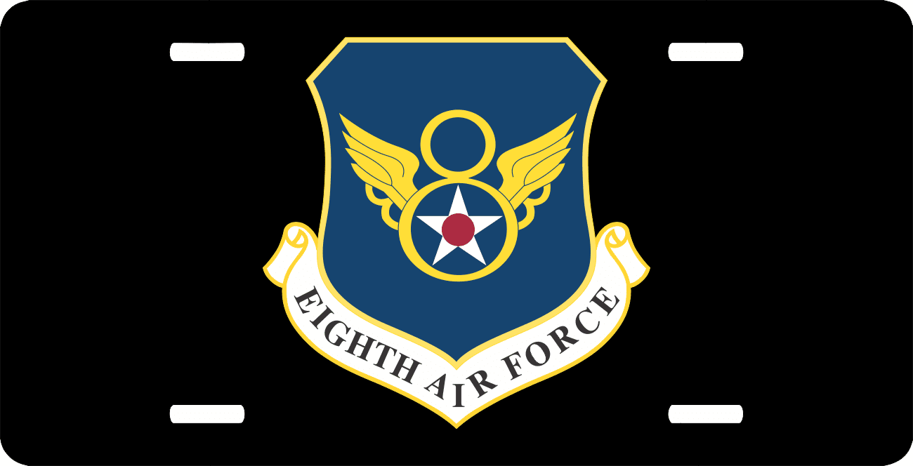 This Eighth Air Force License Plate is made from heavy gauge aluminum and has a baked enamel finish to last for many years of use. Each plate measures 5 15/16" x 11 15/16". This license plate would make a wonderful addition to your collection or a great gift.