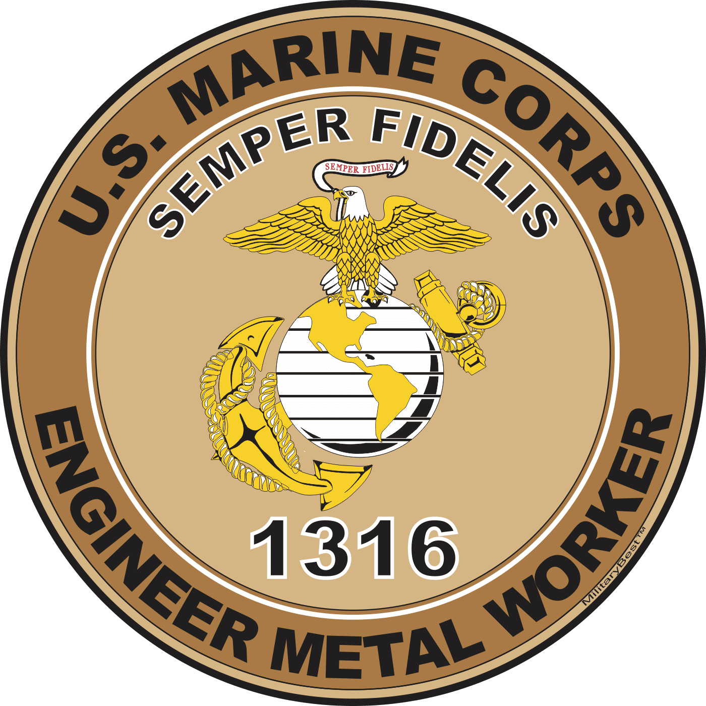 MilitaryBest is proud to offer this U.S.M.C. MOS 1316 Engineer Metal Worker Decal. This U.S. Marine Corps MOS Decal is a great way to show your Marine Pride. All MilitaryBest Marine Corps stickers are printed using high-quality vinyl and U.V. resistant ink. Each is then cured, laminated and die cut for a beautiful crisp, clean and professional look. This U.S.M.C. MOS 1316 Engineer Metal Worker Decal, as well as, any other MilitaryBest.com decal is proudly Made in the USA at our facilities in Scottsboro, AL. Select desired quantity and size from the menu above.Features: