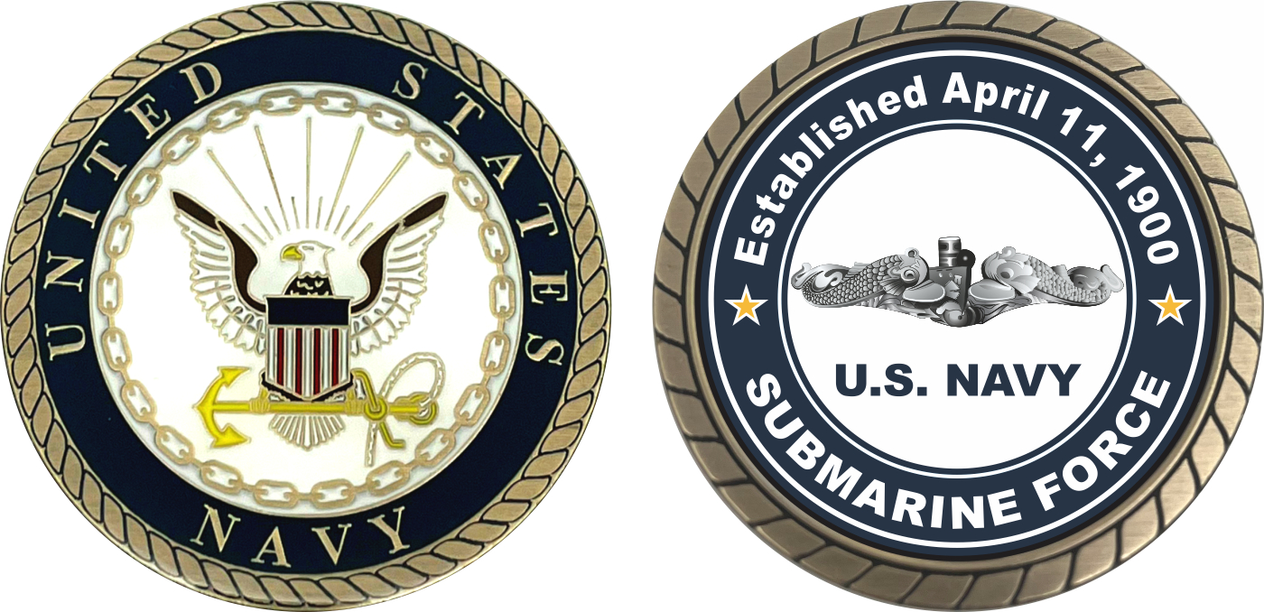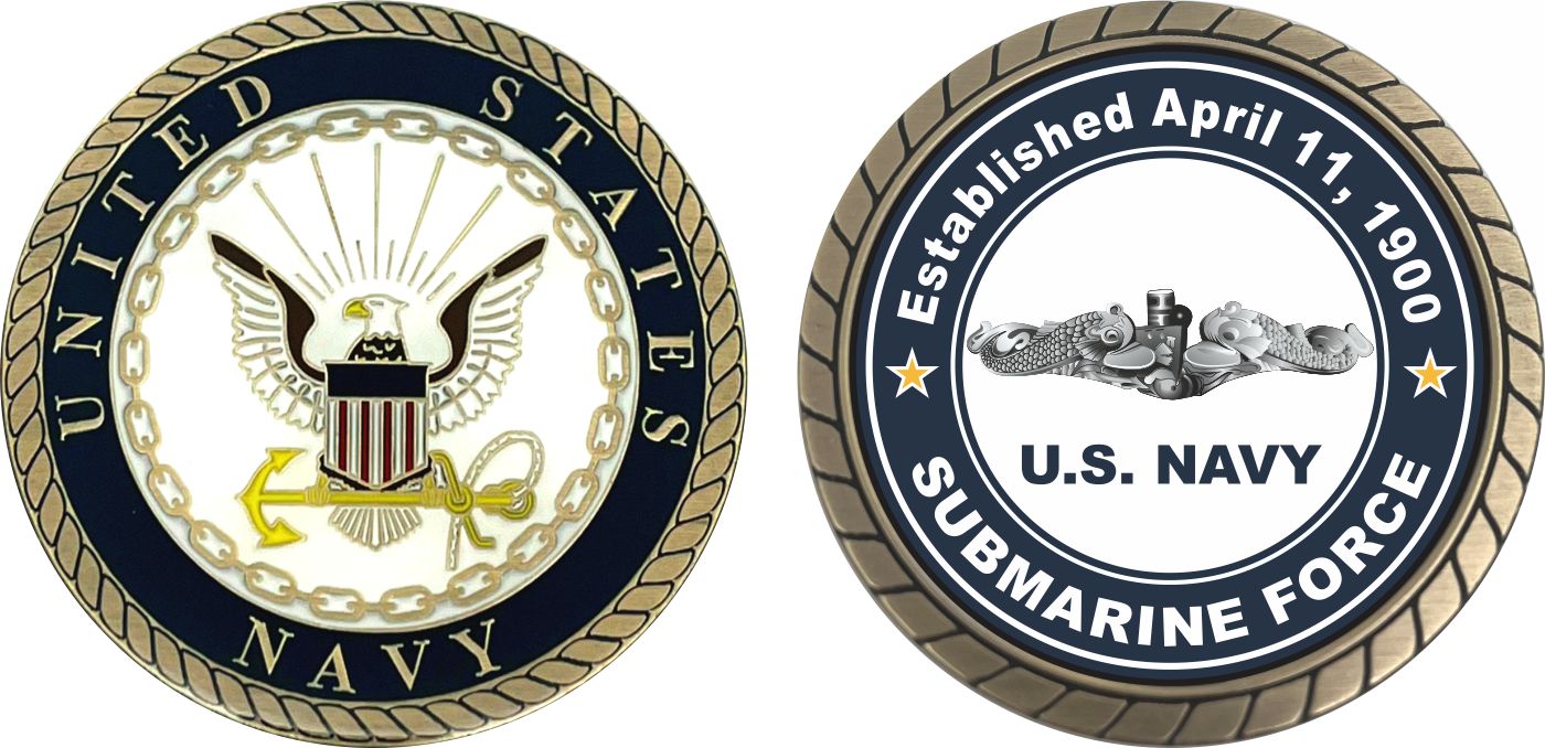 This 1 3/4” Established April 11, 1900, Sub Force Challenge Coin is proudly offered by MilitaryBest. This Officially Licensed Navy coin has beautiful enamel finish on one side and an organized crisp clean Established April 11, 1900, Sub Force design on the opposite side.