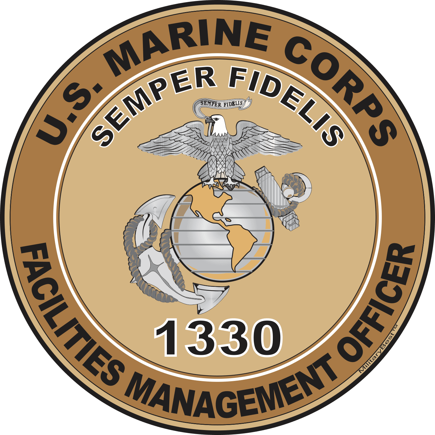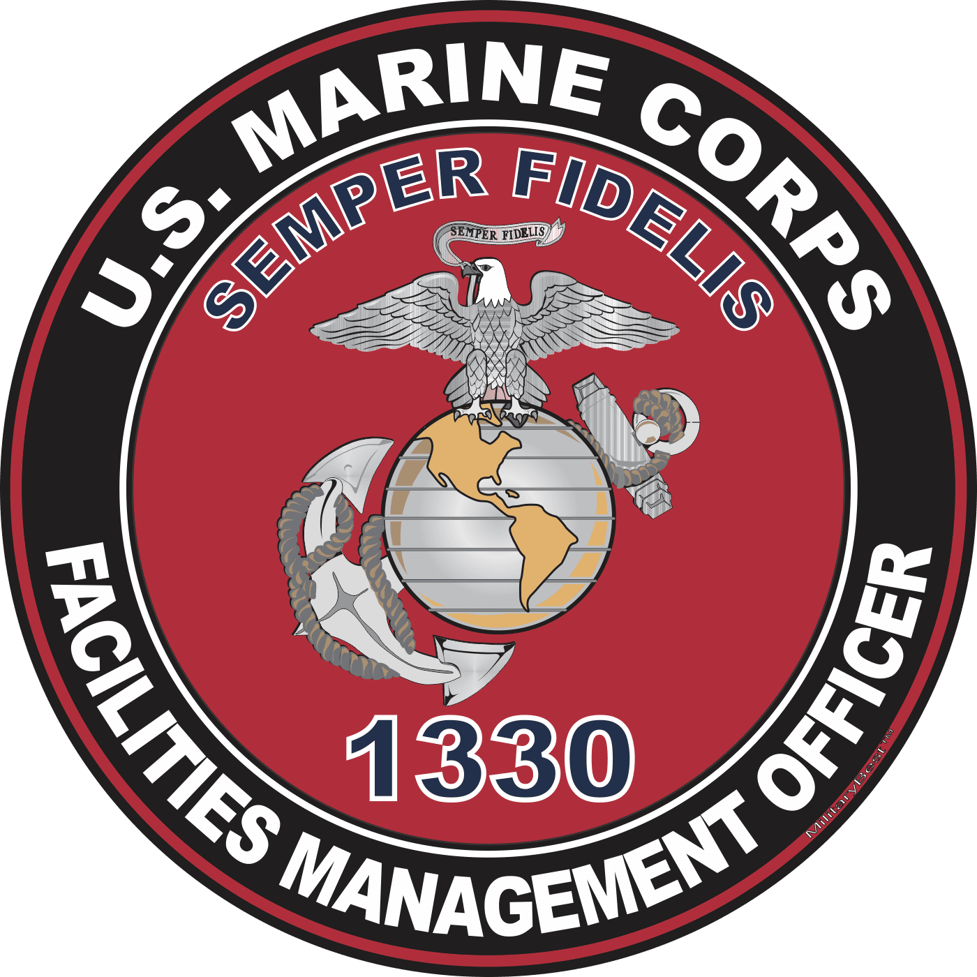 MilitaryBest is proud to offer this U.S.M.C. MOS 1330 Facilities Management Officer Decal. This U.S. Marine Corps MOS Decal is a great way to show your Marine Pride. All MilitaryBest Marine Corps stickers are printed using high-quality vinyl and U.V. resistant ink. Each is then cured, laminated and die cut for a beautiful crisp, clean and professional look. This U.S.M.C. MOS 1330 Facilities Management Officer Decal, as well as, any other MilitaryBest.com decal is proudly Made in the USA at our facilities in Scottsboro, AL. Select desired quantity and size from the menu above.Features: