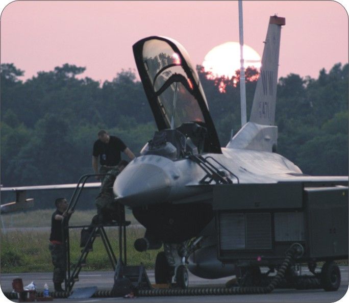 Each of our Air Force Collection mouse pads are proudly made in the USA at our Jacksonville, Florida facilities with sharp, colorful graphics. The pads measure 9" in width by 7 3/4" in height and are 1/4" thick.This Fighting Falcon Sunset mouse pad showcases Staff Sgts. Lyle Janey and Allen Conard and Senior Airman Sean Mcelree put the finishing touches on an F-16 Fighting Falcon as the sun sets over Cope India 06. Halfway through the exercise, U.S. aircraft had flown 97 sorties with their Indian air force counterparts. The Airmen are all avionics specialists deployed here from the 35th Aircraft Maintenance Squadron, Misawa Air Base, Japan.