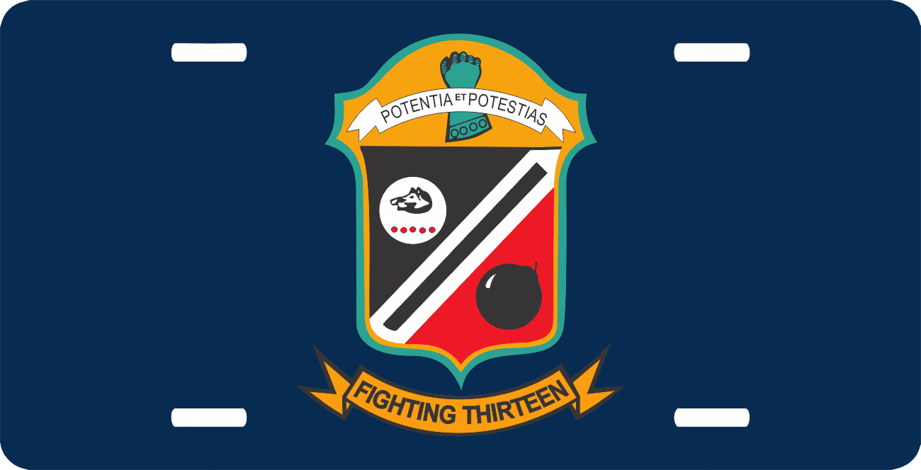 This Fighting Thirteen License Plate is made from heavy gauge aluminum and has a baked enamel finish to last for many years of use. Each plate measures 5 15/16" x 11 15/16". This license plate would make a wonderful addition to your collection or a great gift.