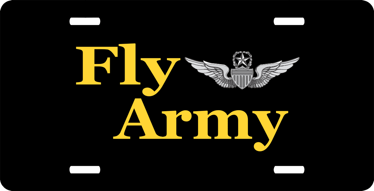 This Fly Army Master Aviator License Plate is made from heavy gauge aluminum and has a baked enamel finish to last for many years of use. Each plate measures 5 15/16" x 11 15/16". This license plate would make a wonderful addition to your collection or a great gift.