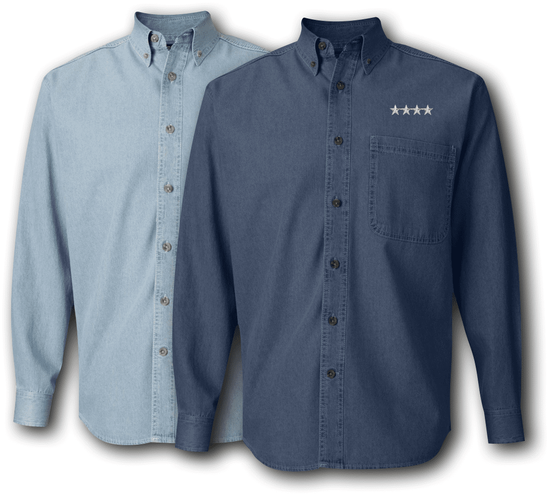 Note: Some of the Color Options pictured may not be available. Available Color Options are listed on the drop down menu above.Militarybest is proud to offer this custom embroidered General A Embroidered Denim Shirt. Each Shirt is embroidered with high quality Rapos thread utilizing our in house "Happy Brand" Embroidering Machines.
