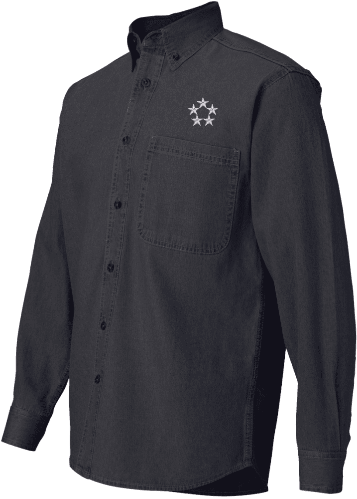 Each General of the Army_1 Denim shirt is made of 6.5 oz., 100% cotton denim, Button-down collar with woodtone buttons, Three woodtone buttons on adjustable placket cuff, Double-needle STITCHING throughout, felled seams, Left chest pocket, Two-ply back yoke and locker loop, and a seamless body with set-in sleeves. Enjoy your shirt!