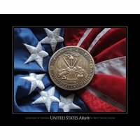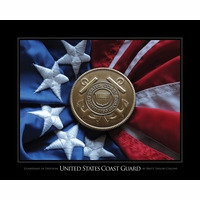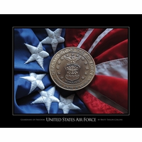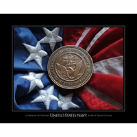 All prints use the official seal for the given branch of service and is placed on a specially folded American Military Ceremonial Flag.