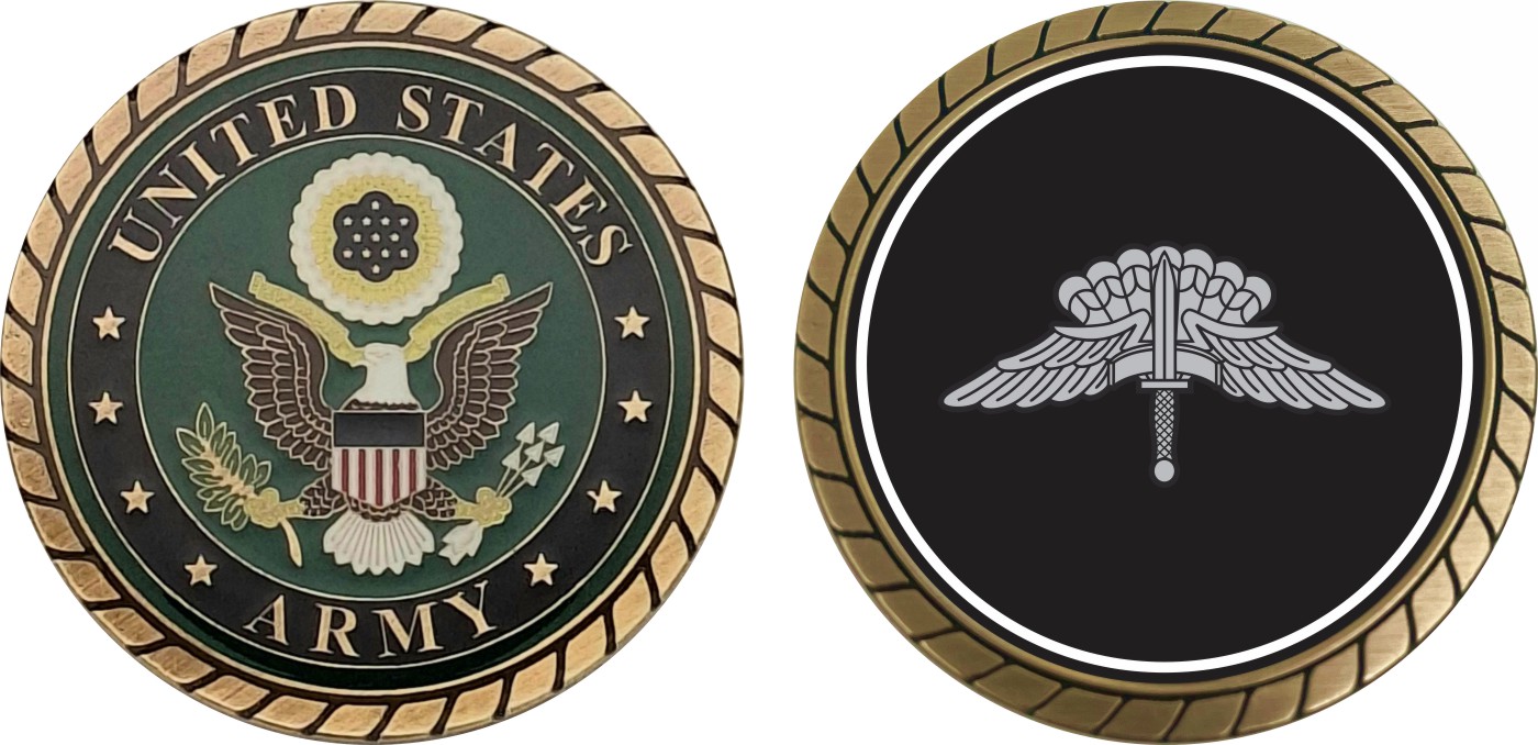 This 1 3/4” HALO Basic Parachutist Jump Wings Challenge Coin is proudly offered by Militarybest. This Officially Licensed Army coin has beautiful enamel finish on one side and an organized crisp clean design on the opposite side.
