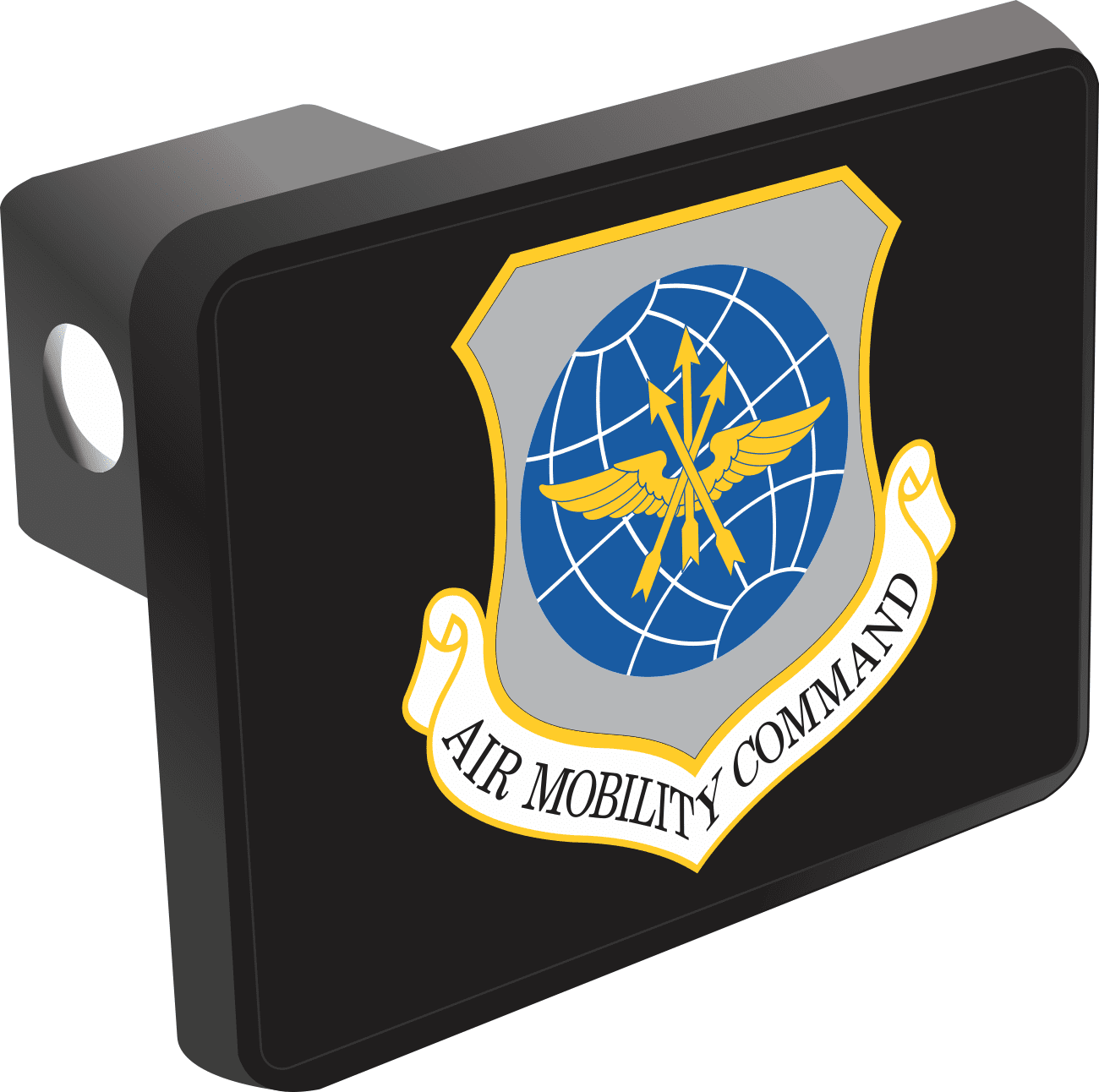 This U.S. Air Force Air Mobility Command is proudly Made in the USA. Each Hitch Cover's face plate measures 4.7" x 3.4" and is applied on a black heavy duty injection molded plastic 2" hitch cover; link pin not included. The face plate of the hitch cover is sublimation printed to provide a beautiful glossy finish sure to catch the eye. This hitch cover would make a wonderful addition to your truck or other vehicle.A percentage of the sale of each MilitaryBest item is forwarded to the licensing departments of each respective branch of service in support of the MWR (Morale, Welfare, & Recreation) program. These payments are made by either ALL4U LLC or the wholesaler from where the item originated. Our team thanks you for your service and your support of these programs.