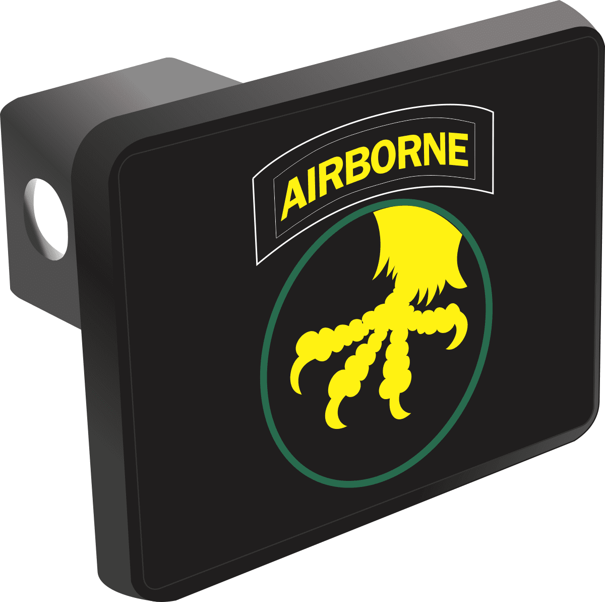 This 17th Airborne Division Trailer Hitch Cover is proudly Made in the USA. Each Hitch Cover's face plate measures 4.7" x 3.4" and is applied on a black heavy duty injection molded plastic 2" hitch cover; link pin not included. The face plate of the hitch cover is sublimation printed to provide a beautiful glossy finish sure to catch the eye. This hitch cover would make a wonderful addition to your truck or other vehicle.A percentage of the sale of each MilitaryBest item is forwarded to the licensing departments of each respective branch of service in support of the MWR (Morale, Welfare, & Recreation) program. These payments are made by either ALL4U LLC or the wholesaler from where the item originated. Our team thanks you for your service and your support of these programs.
