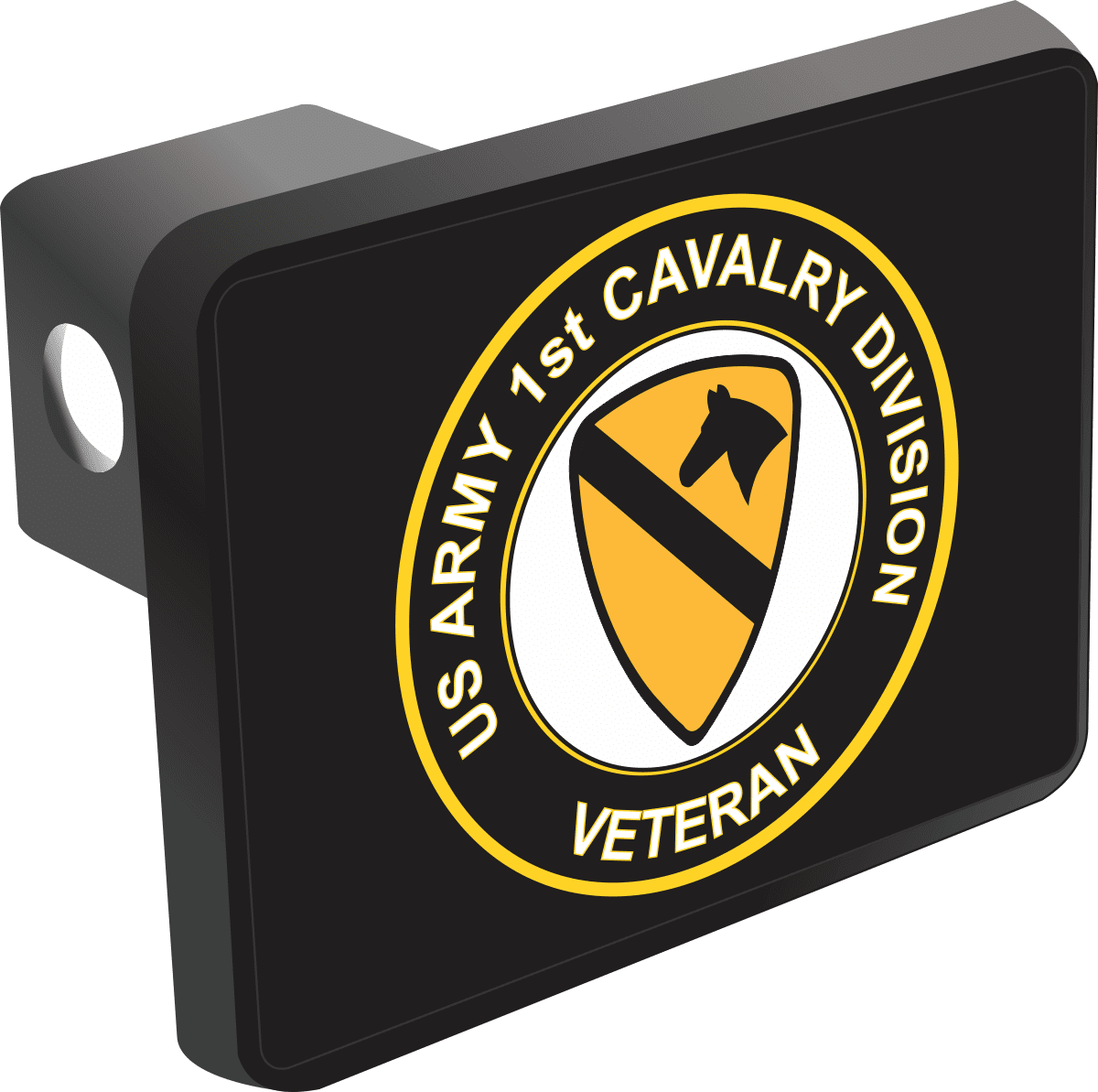 This U.S. Army 1st Cavalry Division Veteran Hitch Cover is proudly Made in the USA. Each Hitch Cover's face plate measures 4.7" x 3.4" and is applied on a black heavy duty injection molded plastic 2" hitch cover; link pin not included. The face plate of the hitch cover is sublimation printed to provide a beautiful glossy finish sure to catch the eye. This hitch cover would make a wonderful addition to your truck or other vehicle.A percentage of the sale of each MilitaryBest item is forwarded to the licensing departments of each respective branch of service in support of the MWR (Morale, Welfare, & Recreation) program. These payments are made by either ALL4U LLC or the wholesaler from where the item originated. Our team thanks you for your service and your support of these programs.