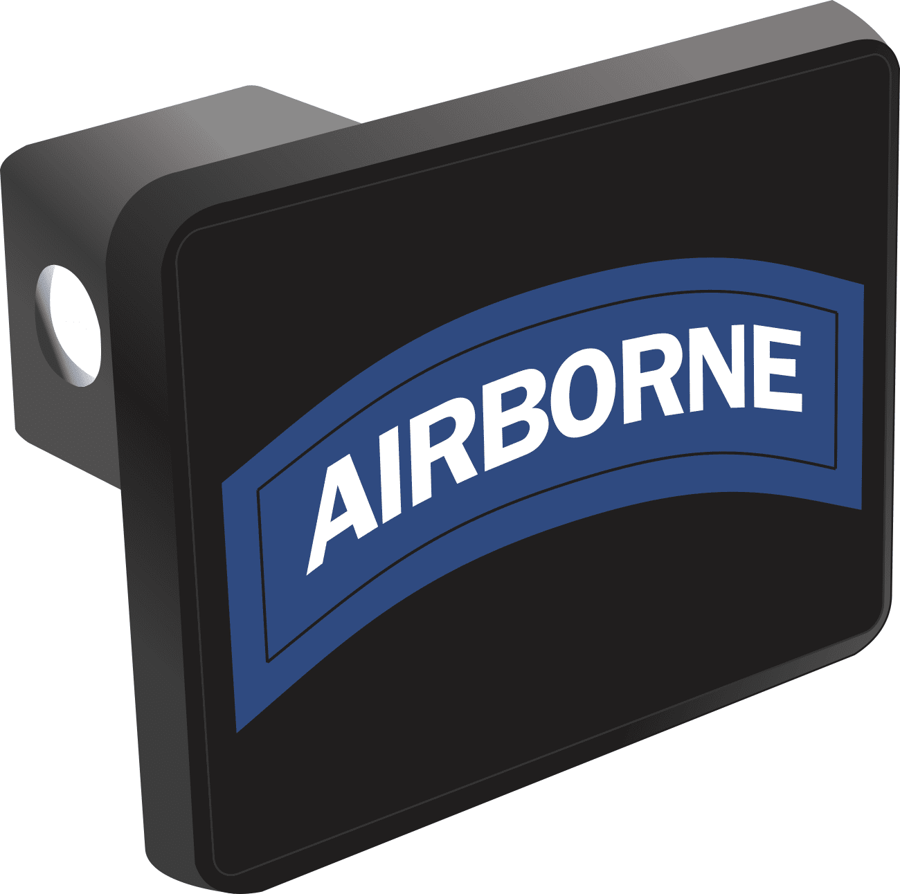 This U.S. Army Airborne Blue and White Tab Hitch Cover is proudly Made in the USA. Each Hitch Cover's face plate measures 4.7" x 3.4" and is applied on a black heavy duty injection molded plastic 2" hitch cover; link pin not included. The face plate of the hitch cover is sublimation printed to provide a beautiful glossy finish sure to catch the eye. This hitch cover would make a wonderful addition to your truck or other vehicle.A percentage of the sale of each MilitaryBest item is forwarded to the licensing departments of each respective branch of service in support of the MWR (Morale, Welfare, & Recreation) program. These payments are made by either ALL4U LLC or the wholesaler from where the item originated. Our team thanks you for your service and your support of these programs.