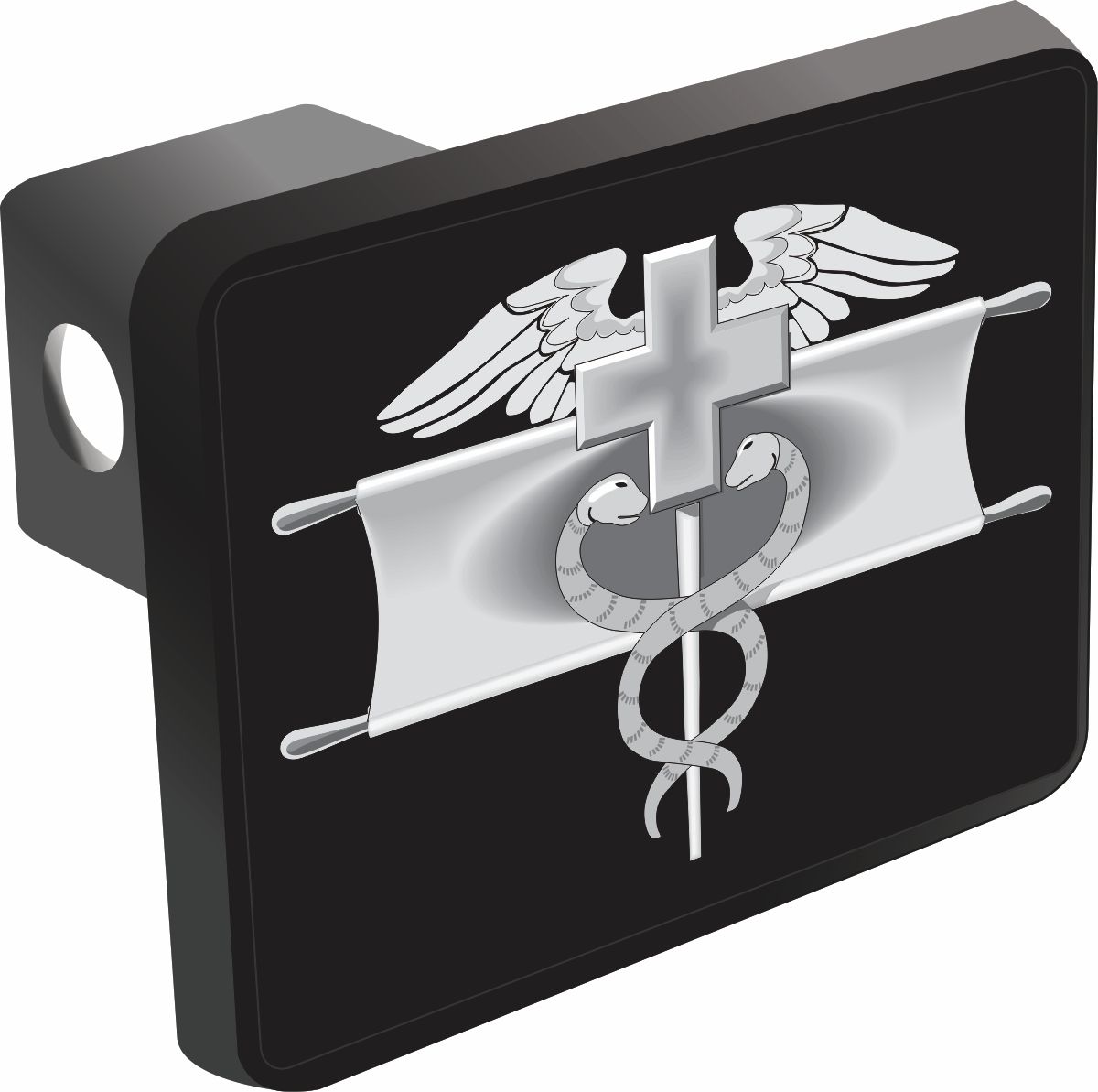This U.S. Army Expert Field Medical Badge Trailer Hitch Cover is proudly Made in the USA. Each Hitch Cover's face plate measures 4.7" x 3.4" and is applied on a black heavy duty injection molded plastic 2" hitch cover; link pin not included. The face plate of the hitch cover is sublimation printed to provide a beautiful glossy finish sure to catch the eye. This hitch cover would make a wonderful addition to your truck or other vehicle.A percentage of the sale of each MilitaryBest item is forwarded to the licensing departments of each respective branch of service in support of the MWR (Morale, Welfare, & Recreation) program. These payments are made by either ALL4U LLC or the wholesaler from where the item originated. Our team thanks you for your service and your support of these programs.