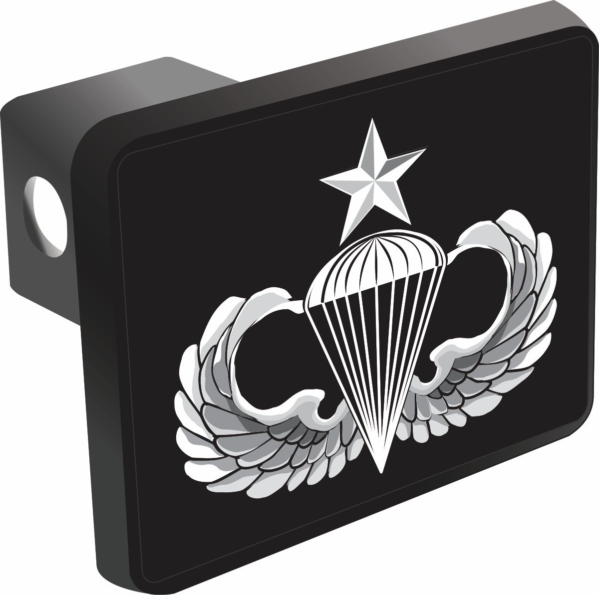 This U.S. Army Senior Parachutist Wings Trailer Hitch Cover is proudly Made in the USA. Each Hitch Cover's face plate measures 4.7" x 3.4" and is applied on a black heavy duty injection molded plastic 2" hitch cover; link pin not included. The face plate of the hitch cover is sublimation printed to provide a beautiful glossy finish sure to catch the eye. This hitch cover would make a wonderful addition to your truck or other vehicle.A percentage of the sale of each MilitaryBest item is forwarded to the licensing departments of each respective branch of service in support of the MWR (Morale, Welfare, & Recreation) program. These payments are made by either ALL4U LLC or the wholesaler from where the item originated. Our team thanks you for your service and your support of these programs.