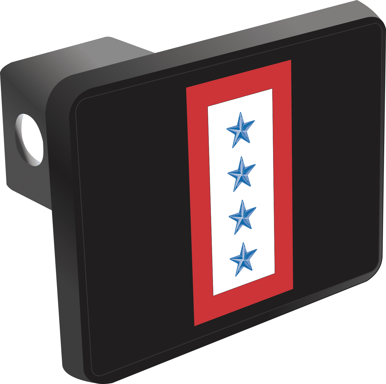 This Four Blue Stars Flag Trailer Hitch Cover is proudly Made in the USA. Each Hitch Cover's face plate measures 4.7" x 3.4" and is applied on a black heavy duty injection molded plastic 2" hitch cover; link pin not included. The face plate of the hitch cover is sublimation printed to provide a beautiful glossy finish sure to catch the eye. This hitch cover would make a wonderful addition to your truck or other vehicle.A percentage of the sale of each MilitaryBest item is forwarded to the licensing departments of each respective branch of service in support of the MWR (Morale, Welfare, & Recreation) program. These payments are made by either ALL4U LLC or the wholesaler from where the item originated. Our team thanks you for your service and your support of these programs.