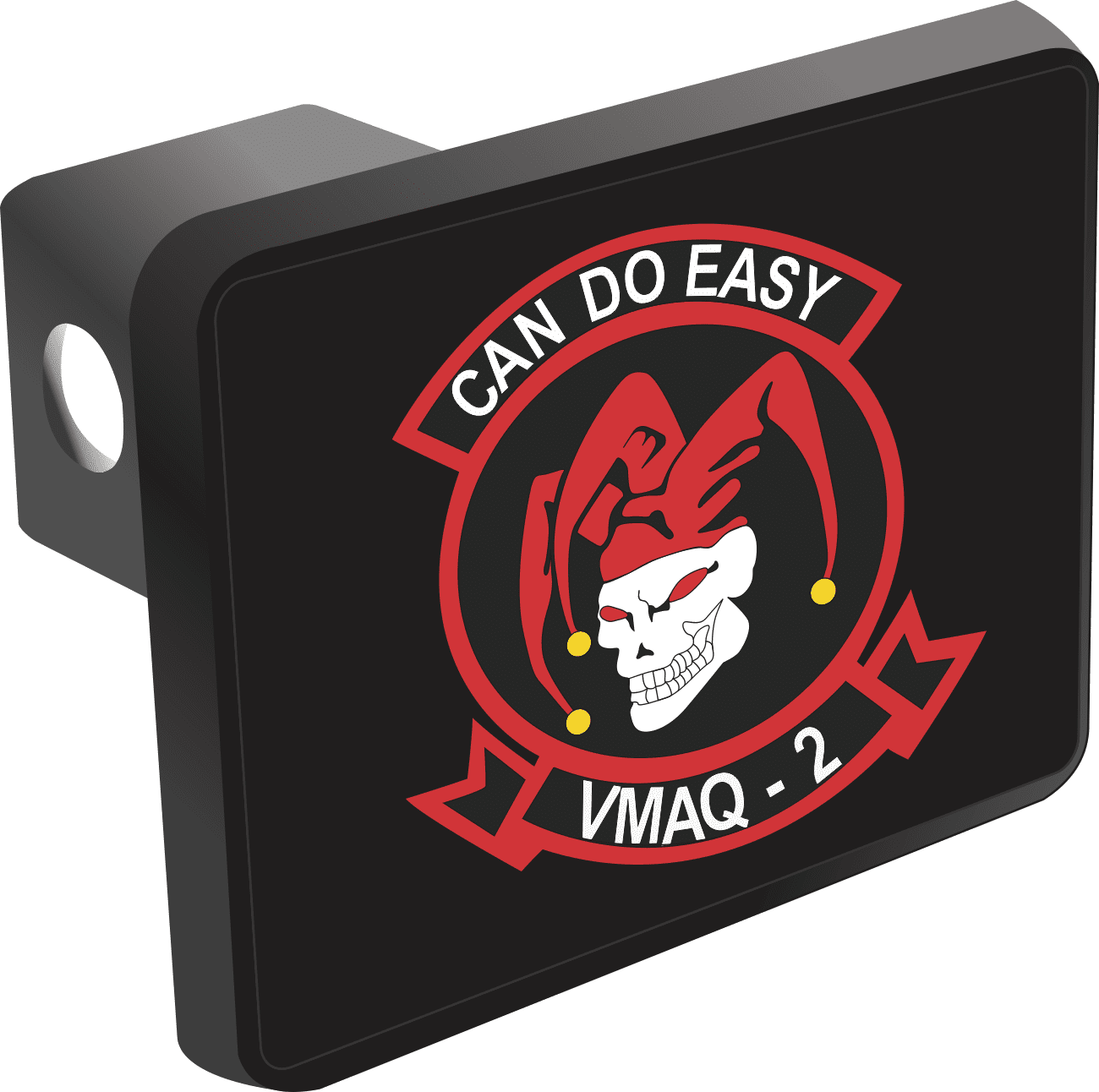 This U.S. Marine Corps Marine Tactical Electronic Warfare Squadron 2 Of MAG 14 Hitch Cover is proudly Made in the USA. Each Hitch Cover's face plate measures 4.7" x 3.4" and is applied on a black heavy duty injection molded plastic 2" hitch cover; link pin not included. The face plate of the hitch cover is sublimation printed to provide a beautiful glossy finish sure to catch the eye. This hitch cover would make a wonderful addition to your truck or other vehicle.A percentage of the sale of each MilitaryBest item is forwarded to the licensing departments of each respective branch of service in support of the MWR (Morale, Welfare, & Recreation) program. These payments are made by either ALL4U LLC or the wholesaler from where the item originated. Our team thanks you for your service and your support of these programs.
