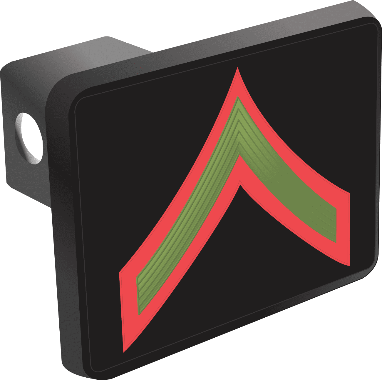 This U.S. Marine Corps Private First Class Green / Red Hitch Cover is proudly Made in the USA. Each Hitch Cover's face plate measures 4.7" x 3.4" and is applied on a black heavy duty injection molded plastic 2" hitch cover; link pin not included. The face plate of the hitch cover is sublimation printed to provide a beautiful glossy finish sure to catch the eye. This hitch cover would make a wonderful addition to your truck or other vehicle.A percentage of the sale of each MilitaryBest item is forwarded to the licensing departments of each respective branch of service in support of the MWR (Morale, Welfare, & Recreation) program. These payments are made by either ALL4U LLC or the wholesaler from where the item originated. Our team thanks you for your service and your support of these programs.