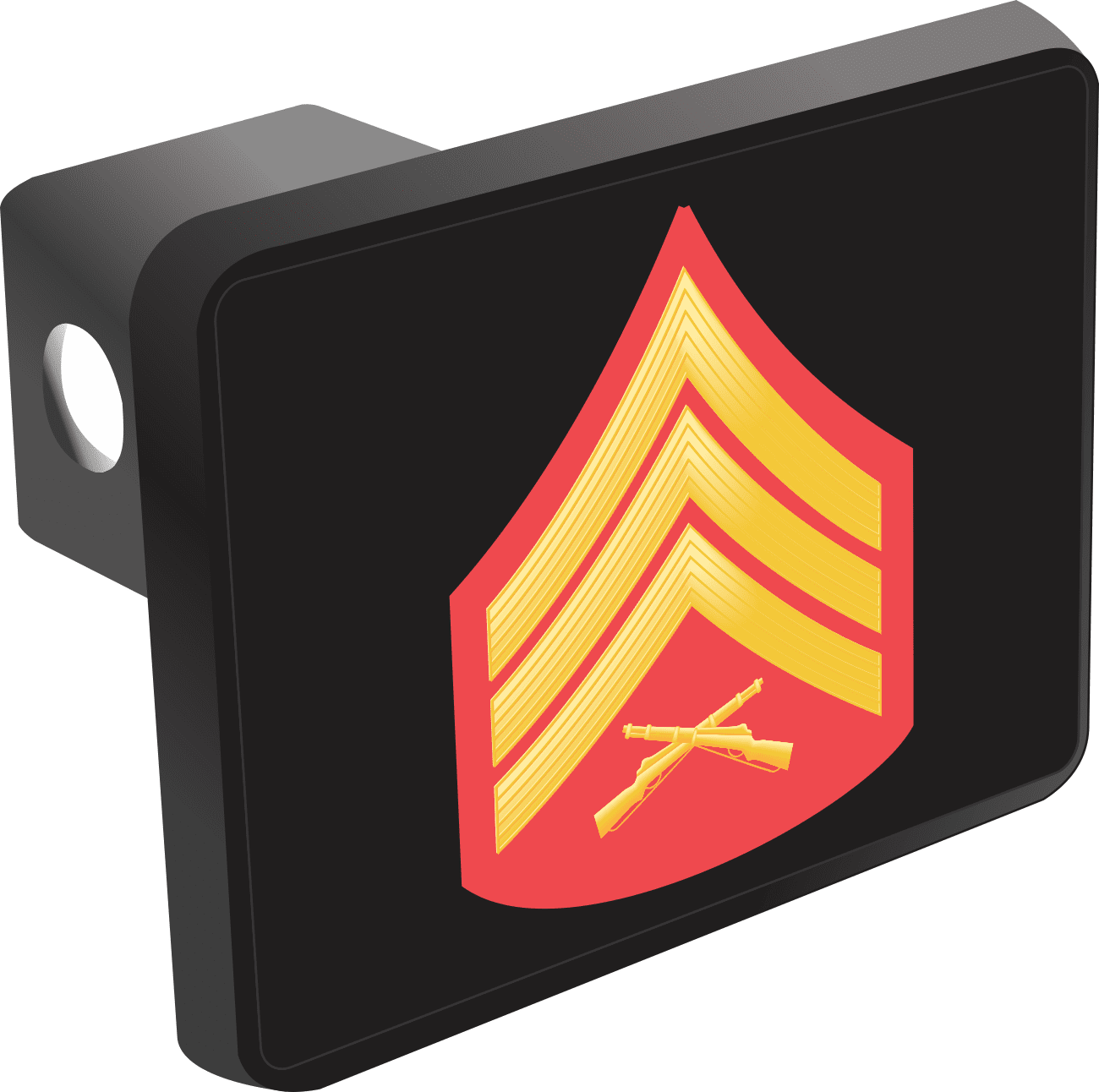 This U.S. Marine Corps Sergeant Red / Gold Hitch Cover is proudly Made in the USA. Each Hitch Cover's face plate measures 4.7" x 3.4" and is applied on a black heavy duty injection molded plastic 2" hitch cover; link pin not included. The face plate of the hitch cover is sublimation printed to provide a beautiful glossy finish sure to catch the eye. This hitch cover would make a wonderful addition to your truck or other vehicle.A percentage of the sale of each MilitaryBest item is forwarded to the licensing departments of each respective branch of service in support of the MWR (Morale, Welfare, & Recreation) program. These payments are made by either ALL4U LLC or the wholesaler from where the item originated. Our team thanks you for your service and your support of these programs.