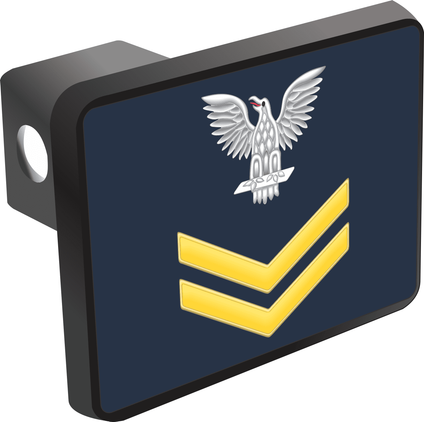 This U.S. Navy Petty Officer 2nd Class E-5 Hitch Cover is proudly Made in the USA. Each Hitch Cover's face plate measures 4.7" x 3.4" and is applied on a black heavy duty injection molded plastic 2" hitch cover; link pin not included. The face plate of the hitch cover is sublimation printed to provide a beautiful glossy finish sure to catch the eye. This hitch cover would make a wonderful addition to your truck or other vehicle.A percentage of the sale of each MilitaryBest item is forwarded to the licensing departments of each respective branch of service in support of the MWR (Morale, Welfare, & Recreation) program. These payments are made by either ALL4U LLC or the wholesaler from where the item originated. Our team thanks you for your service and your support of these programs.