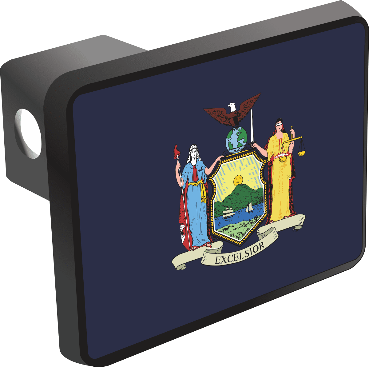 This New York State Flag Hitch Cover is proudly Made in the USA. Each Hitch Cover's face plate measures 4.7" x 3.4" and is applied on a black heavy duty injection molded plastic 2" hitch cover; link pin not included. The face plate of the hitch cover is sublimation printed to provide a beautiful glossy finish sure to catch the eye. This hitch cover would make a wonderful addition to your truck or other vehicle.A percentage of the sale of each MilitaryBest item is forwarded to the licensing departments of each respective branch of service in support of the MWR (Morale, Welfare, & Recreation) program. These payments are made by either ALL4U LLC or the wholesaler from where the item originated. Our team thanks you for your service and your support of these programs.