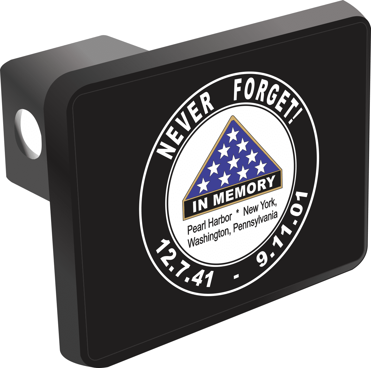 This Pearl Harbor and 9/11 Never Forget Trailer Hitch Cover is proudly Made in the USA. Each Hitch Cover's face plate measures 4.7" x 3.4" and is applied on a black heavy duty injection molded plastic 2" hitch cover; link pin not included. The face plate of the hitch cover is sublimation printed to provide a beautiful glossy finish sure to catch the eye. This hitch cover would make a wonderful addition to your truck or other vehicle.A percentage of the sale of each MilitaryBest item is forwarded to the licensing departments of each respective branch of service in support of the MWR (Morale, Welfare, & Recreation) program. These payments are made by either ALL4U LLC or the wholesaler from where the item originated. Our team thanks you for your service and your support of these programs.