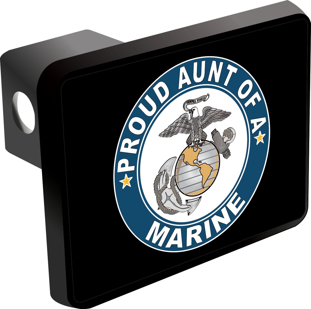 This Proud Aunt of a Marine Trailer Hitch Cover is proudly Made in the USA. Each Hitch Cover's face plate measures 4.7" x 3.4" and is applied on a black heavy duty injection molded plastic 2" hitch cover; link pin not included. The face plate of the hitch cover is sublimation printed to provide a beautiful glossy finish sure to catch the eye. This hitch cover would make a wonderful addition to your truck or other vehicle.A percentage of the sale of each MilitaryBest item is forwarded to the licensing departments of each respective branch of service in support of the MWR (Morale, Welfare, & Recreation) program. These payments are made by either ALL4U LLC or the wholesaler from where the item originated. Our team thanks you for your service and your support of these programs.
