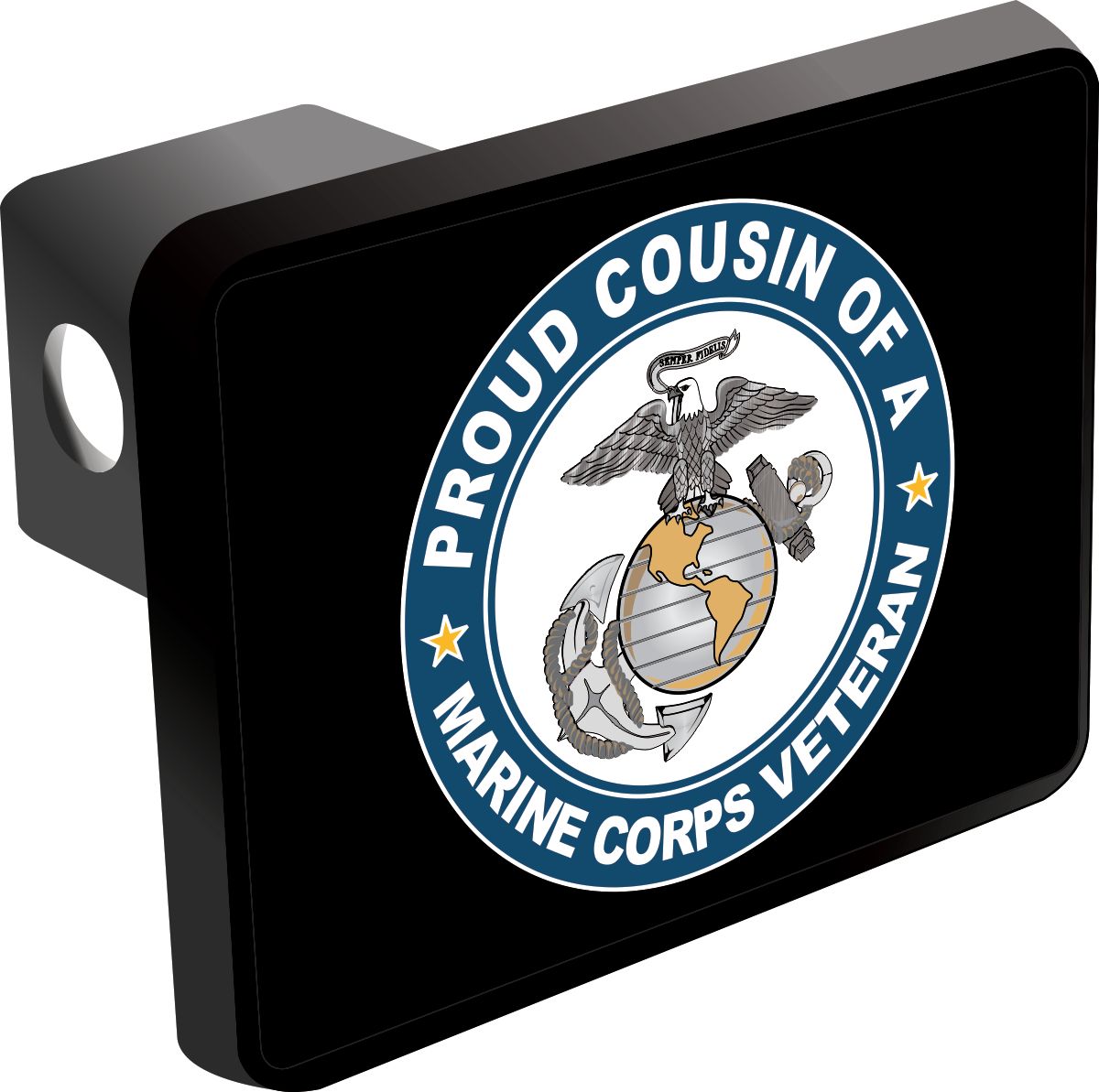 This Proud Cousin of a Marine Corps Veteran Trailer Hitch Cover is proudly Made in the USA. Each Hitch Cover's face plate measures 4.7" x 3.4" and is applied on a black heavy duty injection molded plastic 2" hitch cover; link pin not included. The face plate of the hitch cover is sublimation printed to provide a beautiful glossy finish sure to catch the eye. This hitch cover would make a wonderful addition to your truck or other vehicle.A percentage of the sale of each MilitaryBest item is forwarded to the licensing departments of each respective branch of service in support of the MWR (Morale, Welfare, & Recreation) program. These payments are made by either ALL4U LLC or the wholesaler from where the item originated. Our team thanks you for your service and your support of these programs.