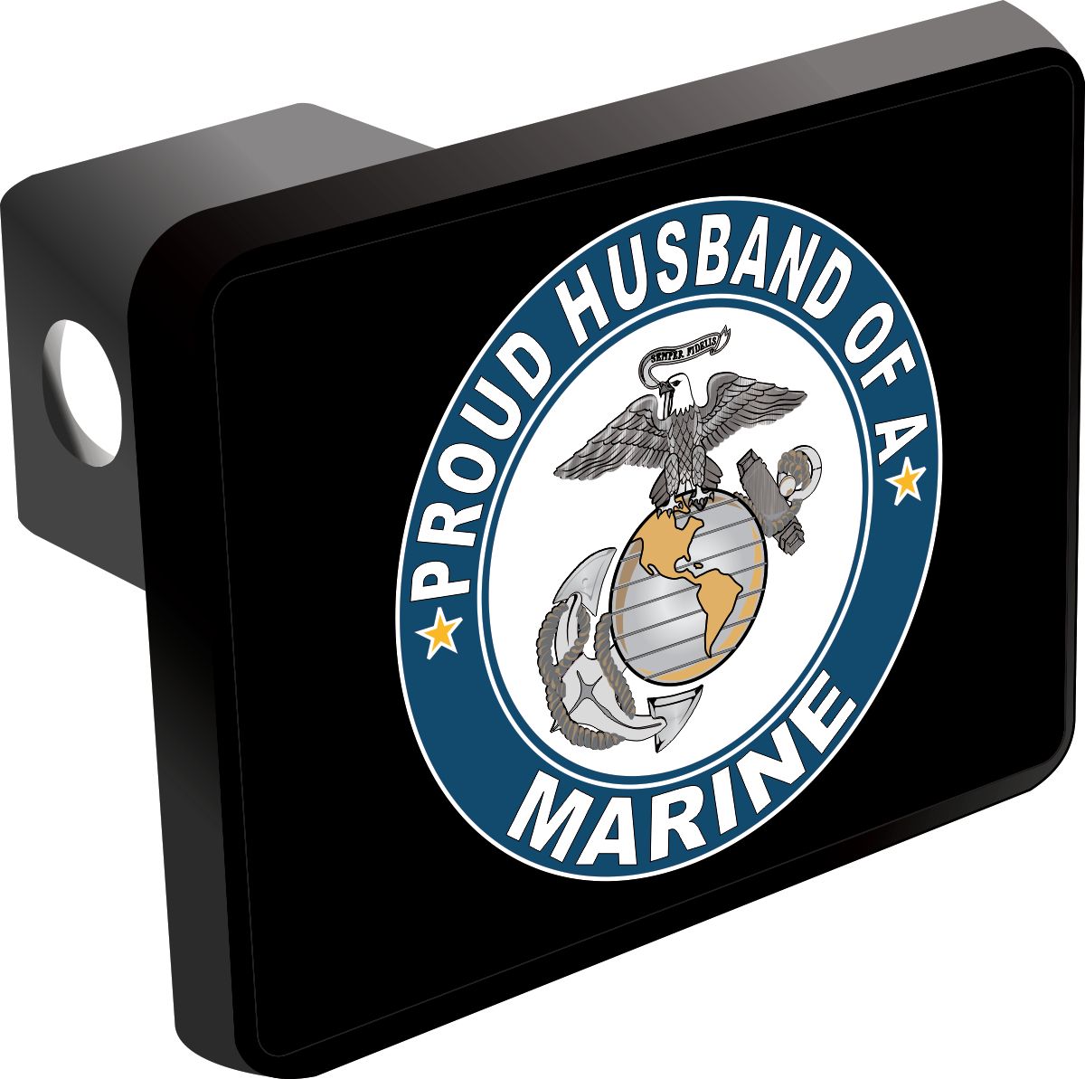 This Proud Husband of a Marine Trailer Hitch Cover is proudly Made in the USA. Each Hitch Cover's face plate measures 4.7" x 3.4" and is applied on a black heavy duty injection molded plastic 2" hitch cover; link pin not included. The face plate of the hitch cover is sublimation printed to provide a beautiful glossy finish sure to catch the eye. This hitch cover would make a wonderful addition to your truck or other vehicle.A percentage of the sale of each MilitaryBest item is forwarded to the licensing departments of each respective branch of service in support of the MWR (Morale, Welfare, & Recreation) program. These payments are made by either ALL4U LLC or the wholesaler from where the item originated. Our team thanks you for your service and your support of these programs.