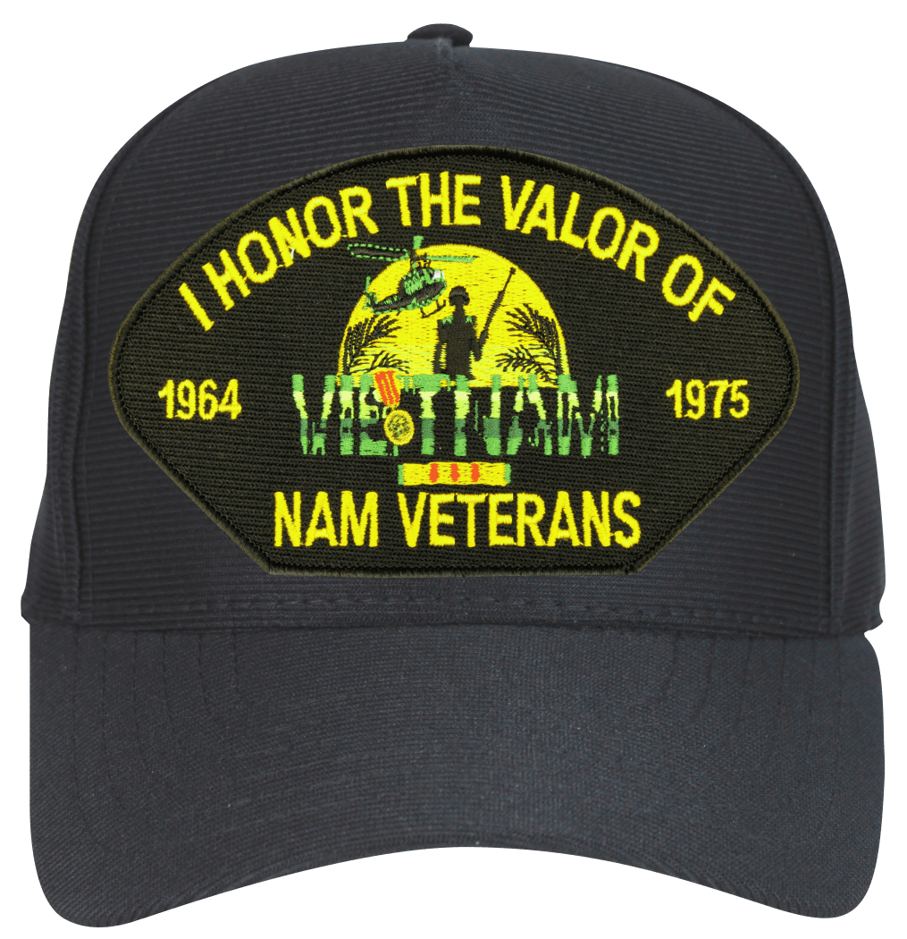 This Honor the Valor of Vietnam Veterans Black Ball Cap Hat is an emblematic, poly, dark under the visor cap. Each has an adjustable strap, and is available as a 5 panel high profile or 6 panel low profile cap. All MilitaryBest caps are fully guaranteed. Some people call them Military Covers or Military Hats. This Military Cap is proudly Made in The U.S.A.For caps ordered with custom embroidered personalized text please allow an additional 3 to 5 days production time. All custom back text will be embroidered in ALL CAPITAL LETTERS. Caps with back text or eggs are non-returnable unless there is a material defect in the cap. If a style is not selected the cap will be made using a high profile style cap as pictured.