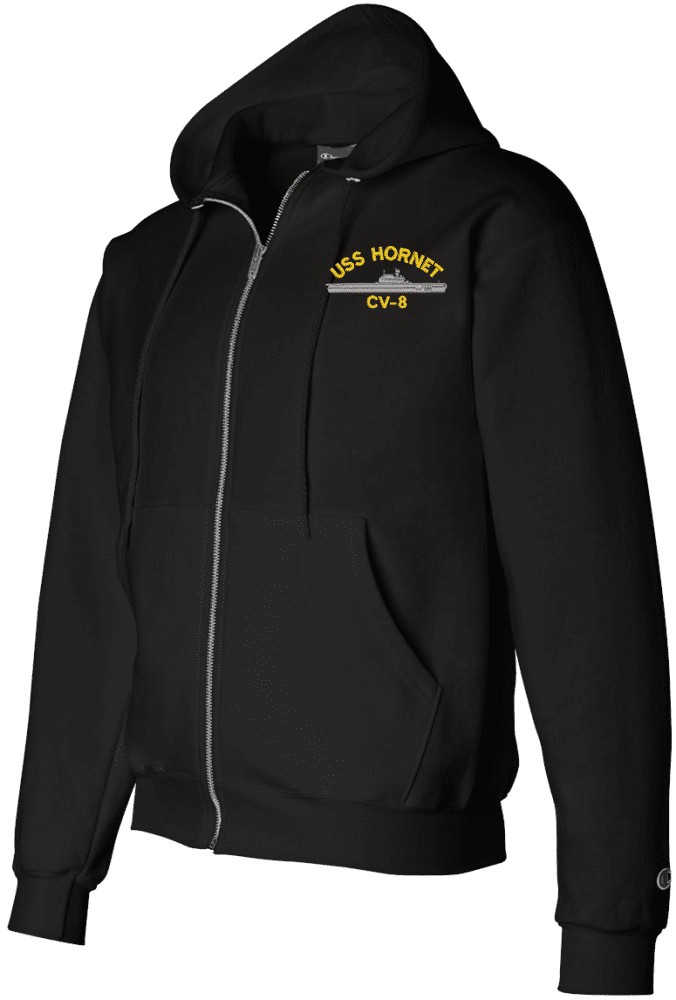 Note: Some of the Color Options pictured may not be available. Available Color Options are listed on the drop down menu above.MilitaryBest is proud to offer this USS Hornet CV-8 Zippered Hoodie. This will make an excellent addition to your wardrobe, or a quality gift. Your satisfaction is guaranteed! These are custom embroidered at our facilities in Scottsboro, AL.