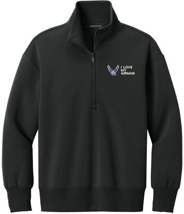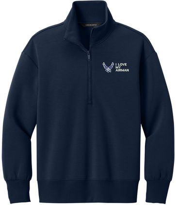 MilitaryBest is proud to offer this I Love My Airman U.S. Air Force Women's Soft Spacer Quarter-Zip. This quarter-zip is embroidered by our MilitaryBest team in Northeast Alabama. These quarter-zips are made using spacer yarn to provide light insulation with a soft structure, they also fight odor and provide light UV ray protection.Care Instructions: Turn Garment Inside Out. Machine Wash Cold With Like Colors. Only Non-Chlorine Bleach, When Needed. Tumble Dry Low, Remove Promptly. Cool Iron, If Necessary. Do Not Use Fabric Softeners Or Dryer Sheets.