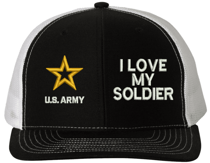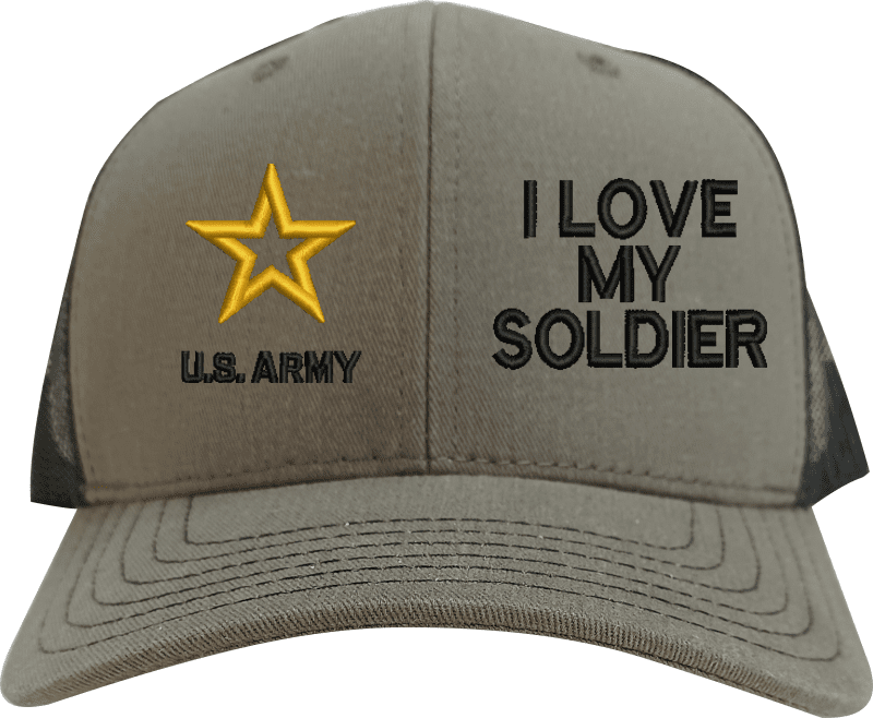 MilitaryBest is proud to offer this I Love My Soldier U.S. Army Mesh Back Cap. The design of this U.S. Army Cap is crisp, clean, and sure to be loved by people of all ages! Select above from our many cap colors. This I Love My Soldier U.S. Army Mesh Back Cap is crafted by our skilled embroidery technicians at our facilities in Scottsboro, AL. As with all MilitaryBest items, your satisfaction is guaranteed!Caps ordered with custom embroidered personalized back text require an additional 2 to 3 days production time. All custom back text will be embroidered in ALL CAPITAL LETTERS. Caps personalized with back text are non-returnable unless there is a material defect in the cap.