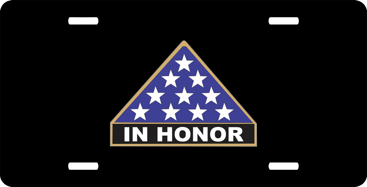This In Honor License Plate is made from heavy gauge aluminum and has a baked enamel finish to last for many years of use. Each plate measures 5 15/16" x 11 15/16". This license plate would make a wonderful addition to your collection or a great gift.