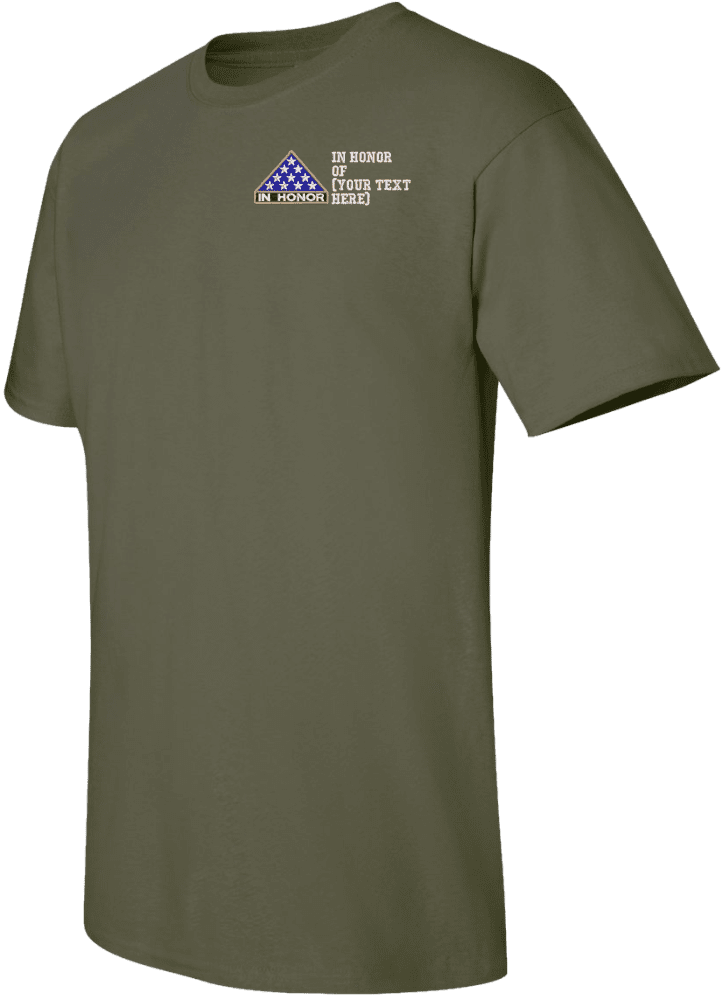 MilitaryBest is proud to offer this In Honor Split Custom T-Shirt and give people the opportunity to show their respects to fallen heroes. All Text on custom orders will be embroidered in ALL CAPITAL LETTERS.