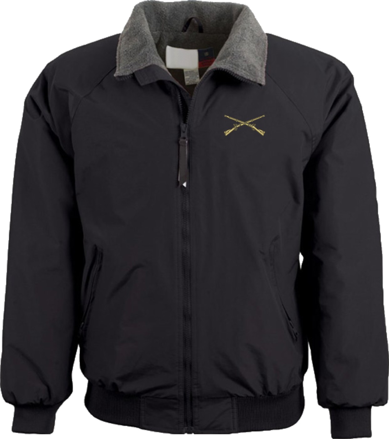 Note: Some of the Color Options pictured may not be available. Available Color Options are listed on the drop down menu above.MilitaryBest is proud to offer this quality U.S. Army Infantry 3-Season Jacket. Each three season jacket is made from a 3-Layer system consisting of a nylon shell, an insulator layer, Nylon-lined sleeves, and an inside layer of fleece for comfort. Each jacket’s features include a sturdy black enamel front-zipper, raglan sleeves, outsize zip pockets, an inside zip security pocket, YKK zippers, and a banded-bottom. As with all MilitaryBest products, your satisfaction is guaranteed! This jacket can be worn in fall, winter, and spring and is proudly custom embroidered at our facilities in Scottsboro, AL.