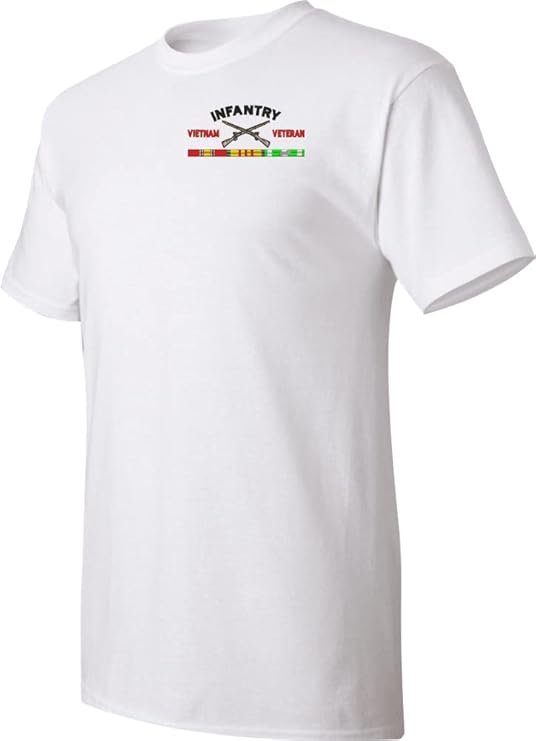 This Infantry Vietnam Veteran White Short Sleeve T-Shirt X-Large is an overstock item and is only available for the value price while supplies last. Clearance Items are not eligible for Refunds or Returns,A percentage of the sale of each MilitaryBest item is forwarded to the licensing departments of each respective branch of service in support of the MWR (Morale, Welfare, & Recreation) program. These payments are made by either ALL4U LLC or the wholesaler from where the item originated. Our team thanks you for your service and your support of these programs.
