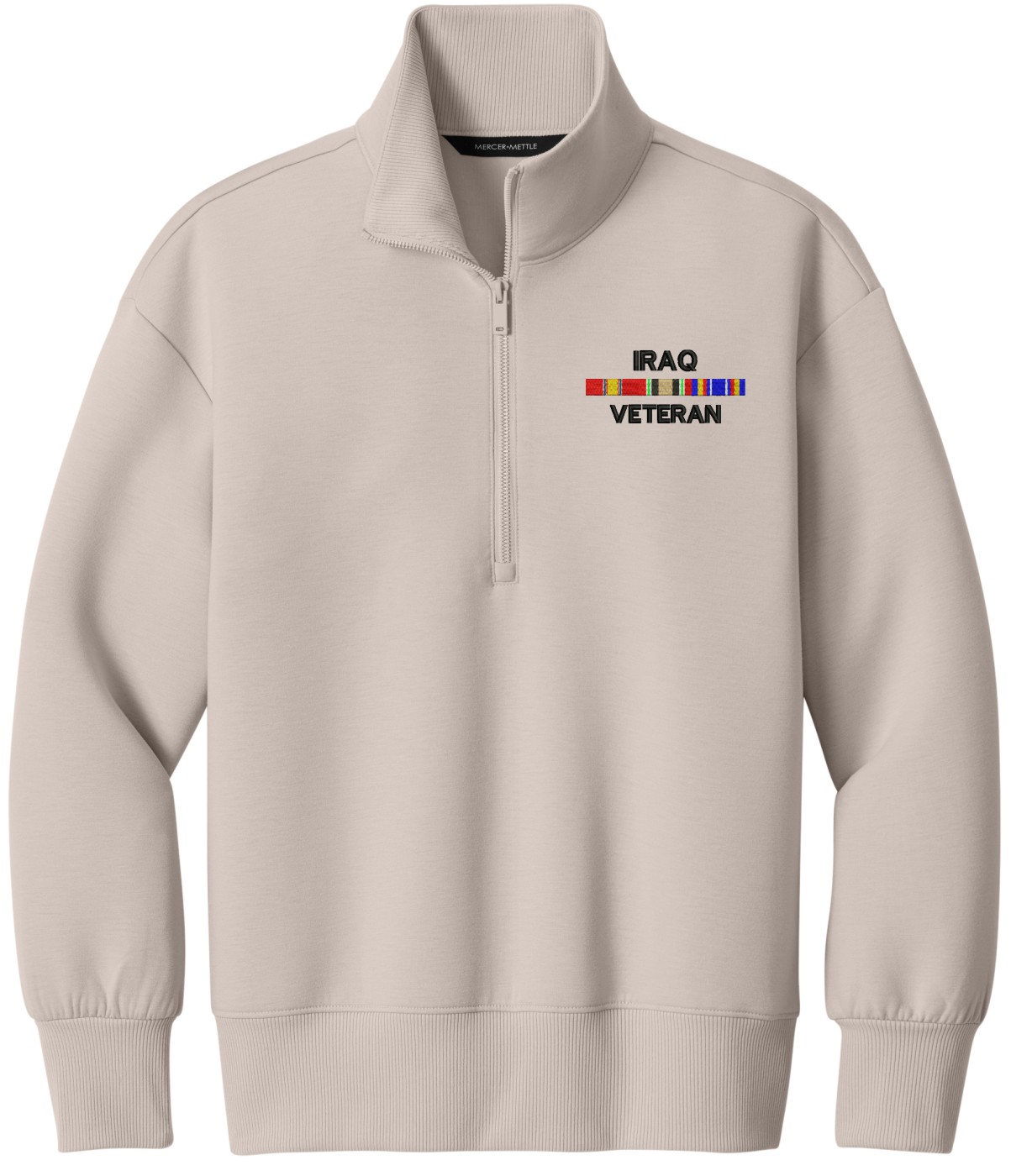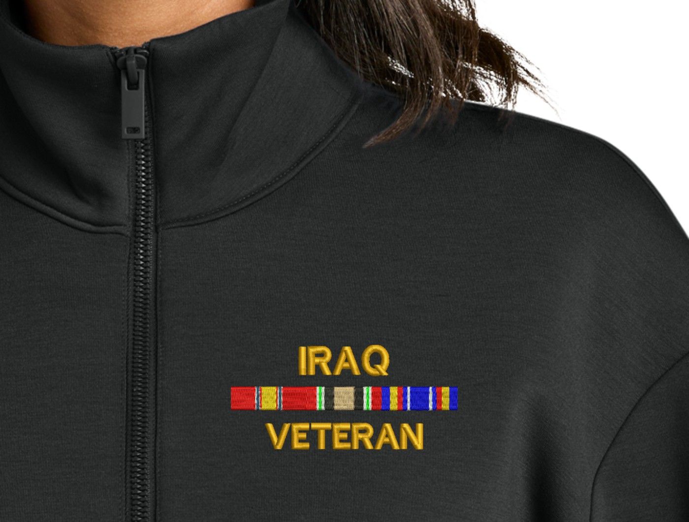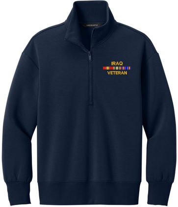 MilitaryBest is proud to offer this Iraq Veteran with Service Ribbons Women's Soft Spacer Quarter-Zip. This quarter-zip is embroidered by our MilitaryBest team in Northeast Alabama. These quarter-zips are made using spacer yarn to provide light insulation with a soft structure, they also fight odor and provide light UV ray protection.Care Instructions: Turn Garment Inside Out. Machine Wash Cold With Like Colors. Only Non-Chlorine Bleach, When Needed. Tumble Dry Low, Remove Promptly. Cool Iron, If Necessary. Do Not Use Fabric Softeners Or Dryer Sheets.