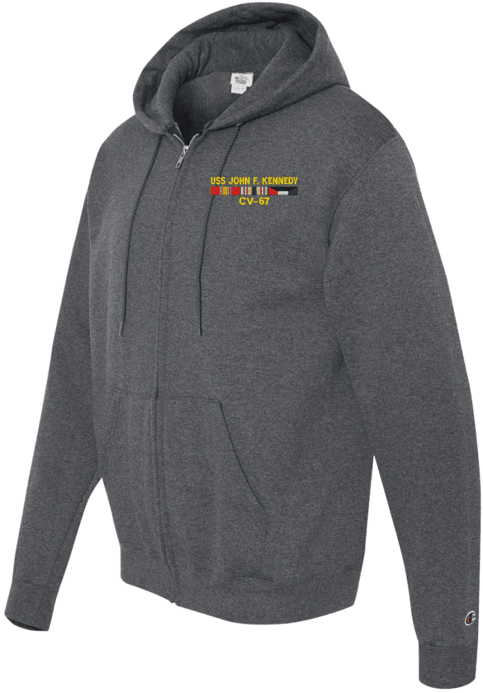 MilitaryBest has expanded its line of apparel with this custom embroidered USS John F. Kennedy CV-67 with Desert Storm Ribbons (Kuwait) Full-Zip Hoodie. This will make an excellent addition to your wardrobe, or a great gift. Your satisfaction is Guaranteed! This is custom embroidered at our facilities in Scottsboro, AL.