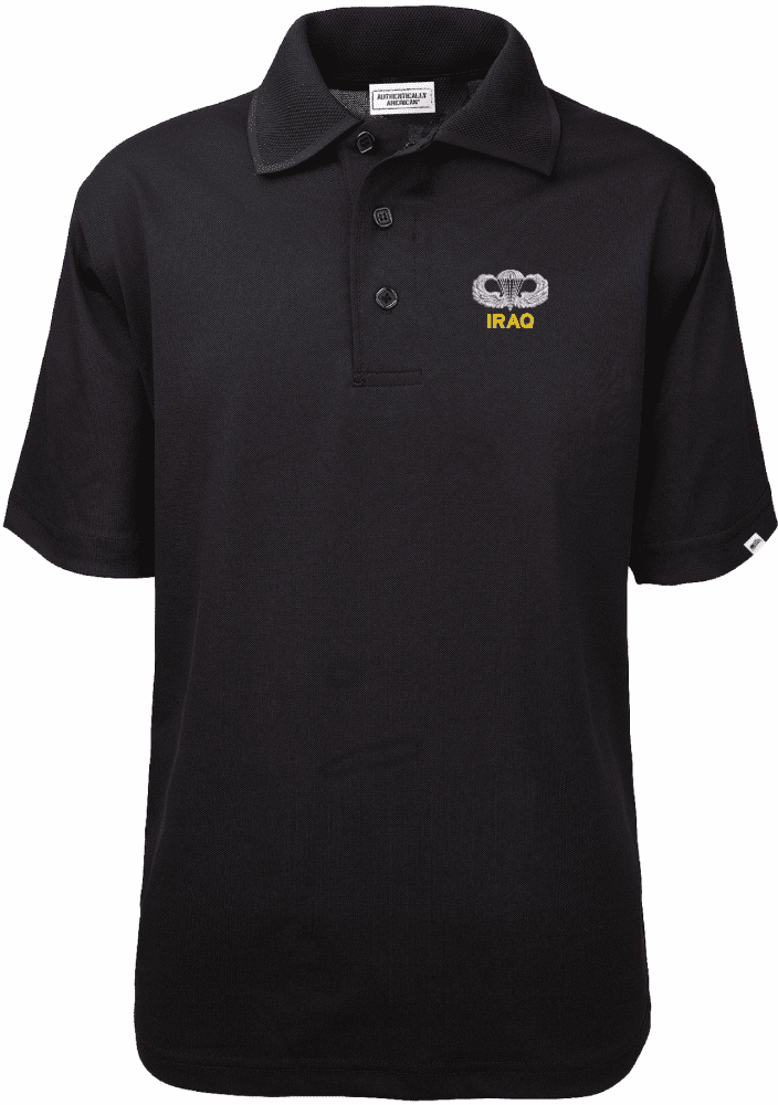 MilitaryBest proudly offers a top-quality U.S. Army Iraq Jump Wings Authentically American Mens Moisture Wicking Polo made in the USA by Authentically American whom we have proudly partnered with.- Proudly Made and Embroidered in the USA.