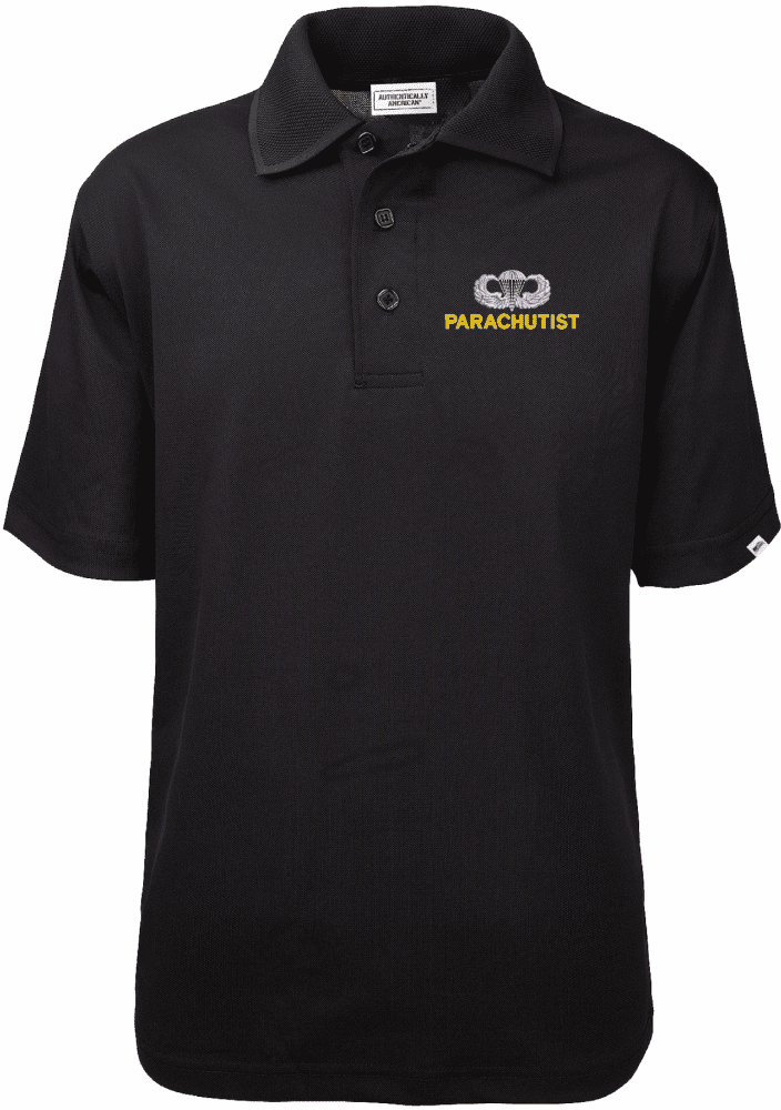 MilitaryBest proudly offers a top-quality U.S. Army Parachutist Jump Wings Authentically American Mens Moisture Wicking Polo made in the USA by Authentically American whom we have proudly partnered with.- Proudly Made and Embroidered in the USA.