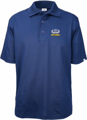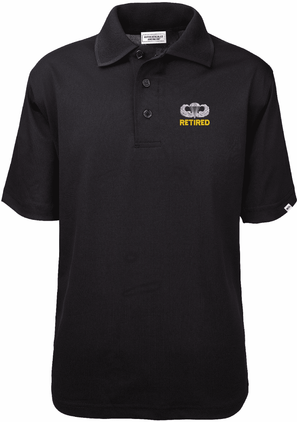 MilitaryBest proudly offers a top-quality U.S. Army Retired Jump Wings Authentically American Mens Moisture Wicking Polo made in the USA by Authentically American whom we have proudly partnered with.- Proudly Made and Embroidered in the USA.