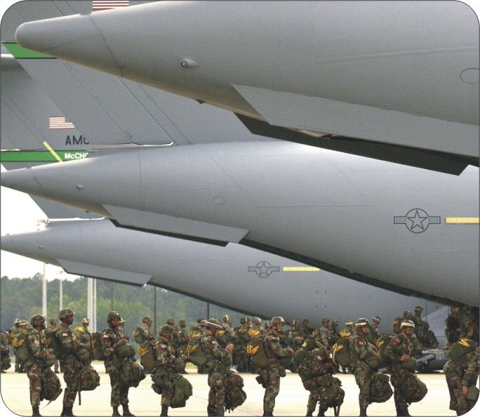 Each of our Operation Iraqi Freedom / Enduring Freedom Collection mouse pads are proudly made in the USA at our Jacksonville, Florida facilities with sharp, colorful graphics. The pads measure 9" in width by 7 3/4" in height and are 1/4" thick.This Loading the C-17 Globemaster mouse pad features Paratroopers from the 82nd Airborne Division boarding three C-17 Globemaster III aircraft for a jump over Fort Bragg, N.C., during Exercise Joint Forcible Entry.
