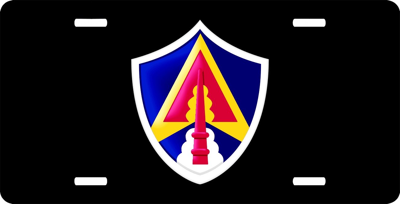 This Army Space Command License Plate is made from heavy gauge aluminum and has a baked enamel finish to last for many years of use. Each plate measures 5 15/16" x 11 15/16". This license plate would make a wonderful addition to your collection or a great gift.